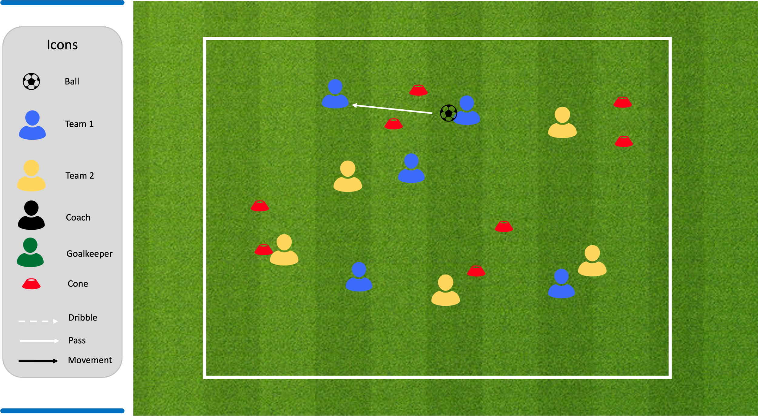 If the team out of possession win the ball then they look to pass to team mates through the cones.